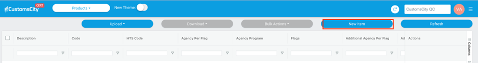 on the option new item