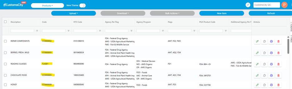 the The product code to identify and provide under our file